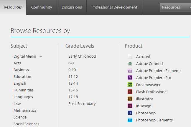 Adobe Education Exchange has to offer. Subject areas include business, education, English, humanities, law, math, science and social studies. With all grade levels and products covered, you can scan the discussion boards, read about other teachers and find lesson plans. All you need is a free account, so sign up