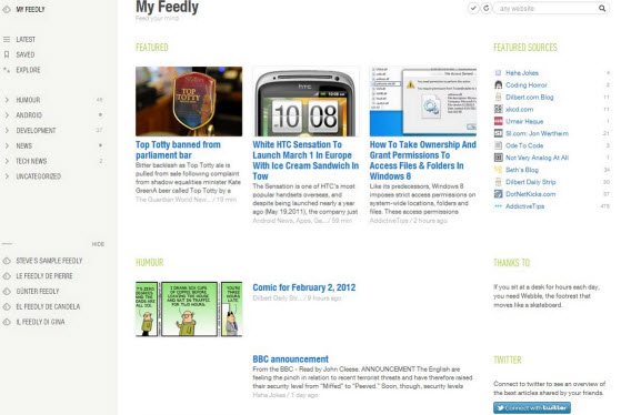 When I learned yesterday about Google Reader closing in July, I looked into alternatives. As a visual learner, I have to say I love Feedly.. Switching was a snap, as I imported all my RSS feeds into Feedly with a few clicks. There is a mobile app for Android and iPhone and Kindle, and they have a blog, which currently has instructions for your migration. Here is a sample screenshot of what you will see when you log into your new account: